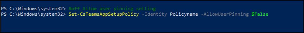 Allow user pinning in Microsoft Teams app setup policy: