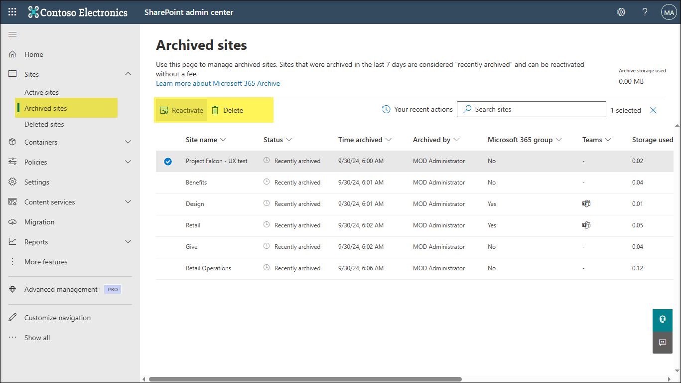 Manage Microsoft 365 Archive in the SharePoint admin center