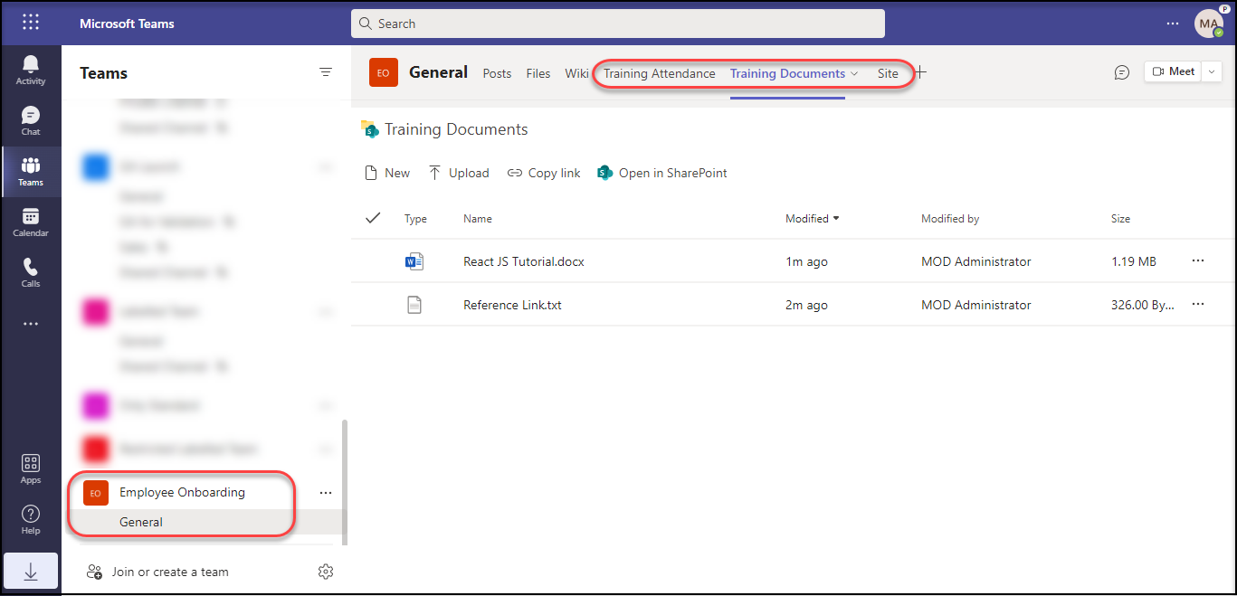 Note : Creation of a new channel / adding resources to a channel other than General is not possible from SharePoint.