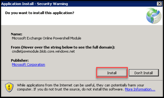 After the installation, Microsoft Exchange Online Remote PowerShell
