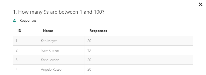 you can see the name of each responder and their answers for each