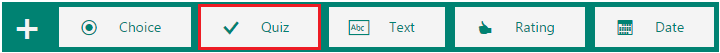 can choose to add Choice, Quiz, Text, Rating, or Date questions. Use