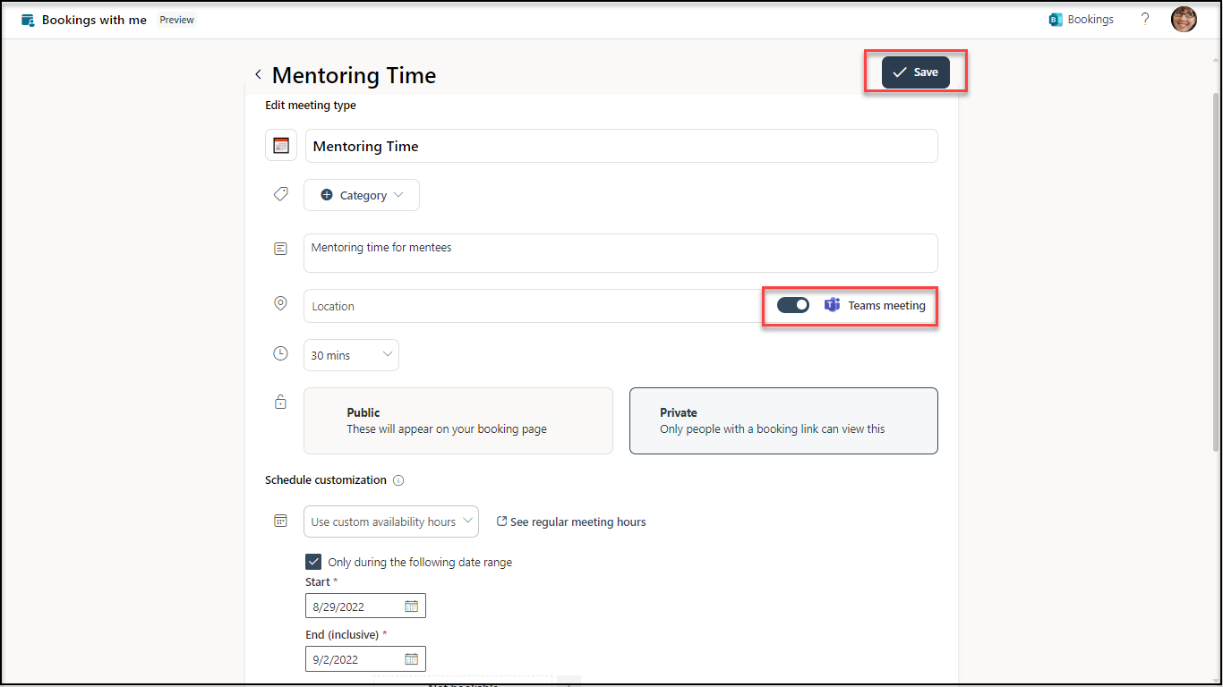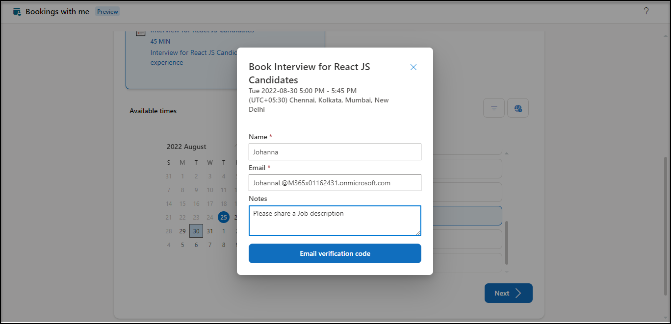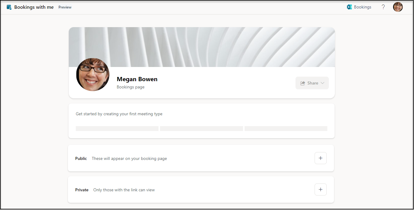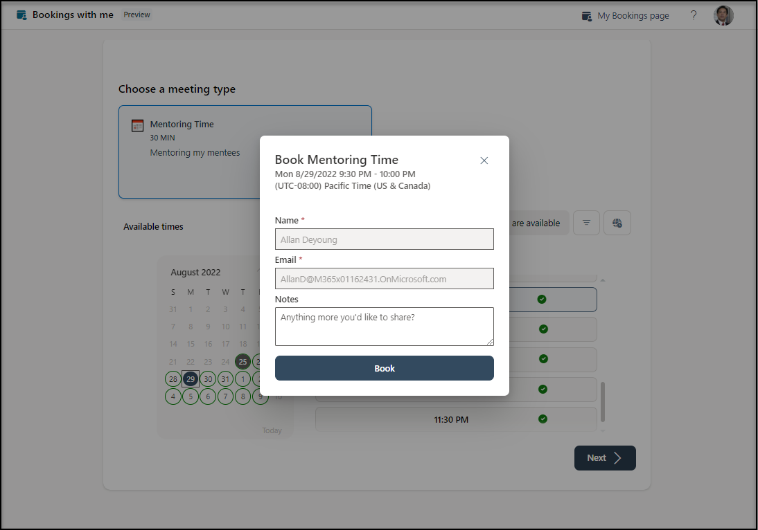 Bookings with me is an ideal solution for enterprise, small business, and users in education to schedule 1:1 meetings with those inside and outside their organizations.