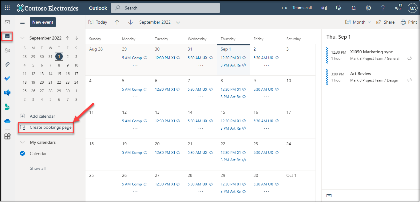 Navigate to Outlook web view -> calendar -> “Create bookings page” option in left panel.