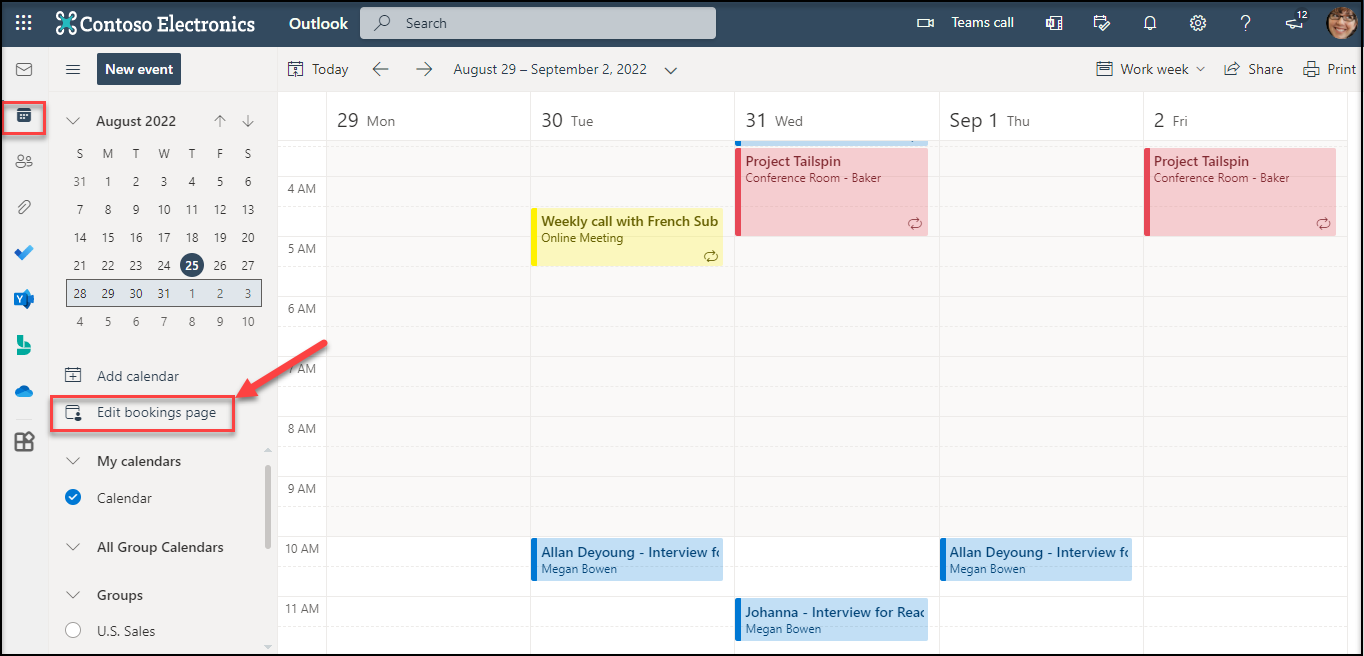 Navigate to Outlook web view -> calendar -> “Edit bookings page” option in left panel.