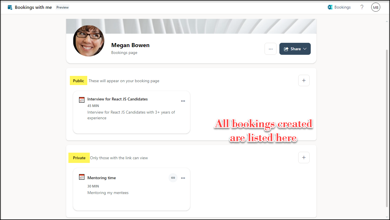 - On clicking ‘Manage your own booking page’, you are routed to your ‘Bookings with me’ Home Page.