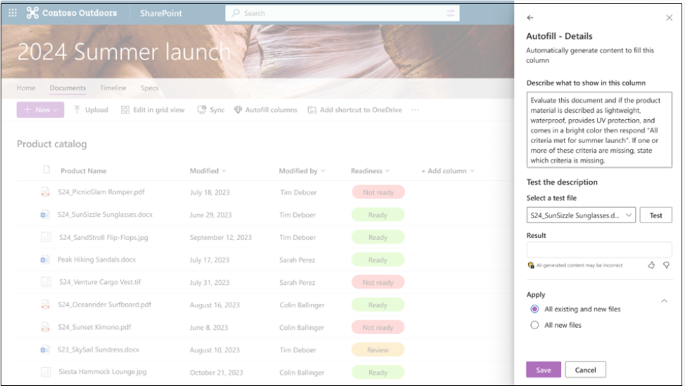 Many more are expected to add-up in the first half of 2024 that include : - Autofill columns – dynamically adds a new column to a document library and automatically fills in discovered values with the power of AI.