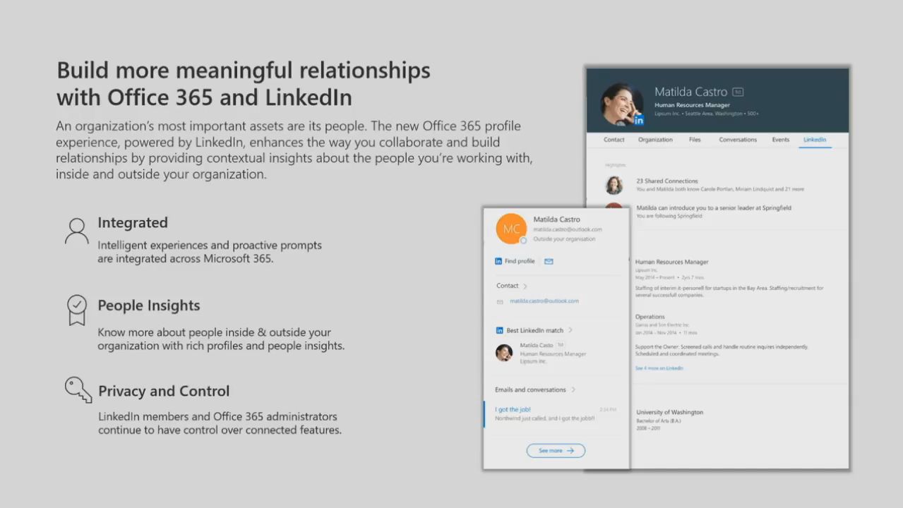 integrating LinkedIn with Office 365 Profile Card. By integrating Office