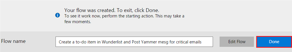 Finally click Done to complete the flow creation.