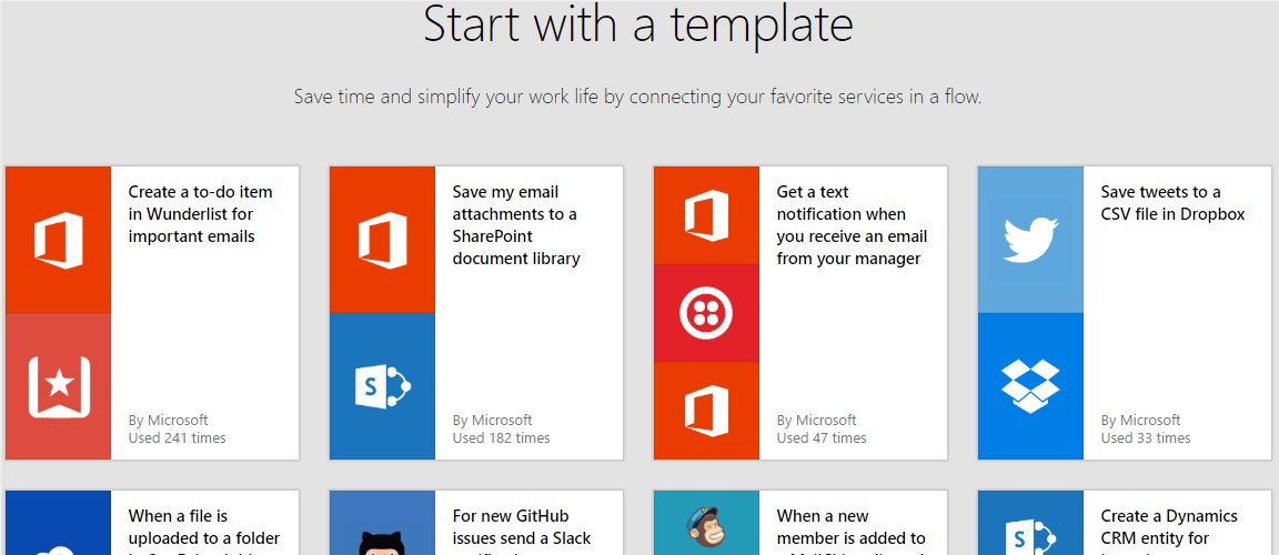 Once you sign in to Microsoft Flow, you can quickly start setting up