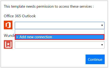 365 and Wunderlist by selecting Add new connection in the drop-down