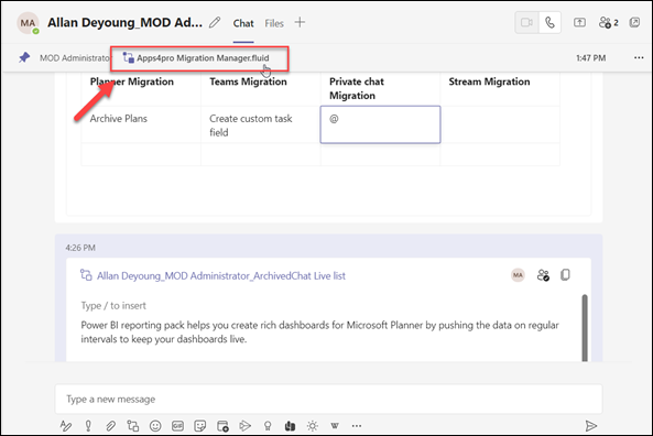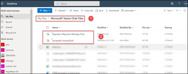 The Loop Component is stored as a type of fluid file in the creator’s OneDrive under the path My filesMicrosoft Teams Chat Files.