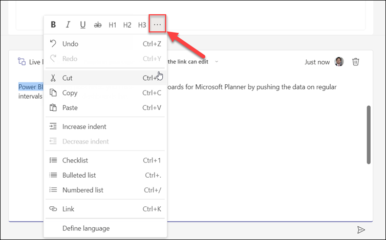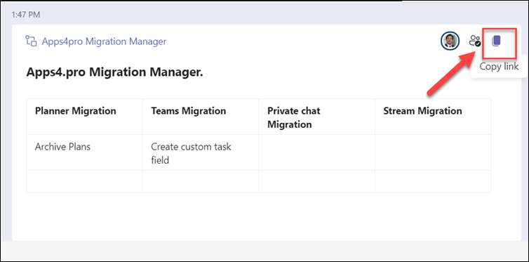 You can also share the link of the loop component to other users via chat by using the ‘Copy Link’ option.