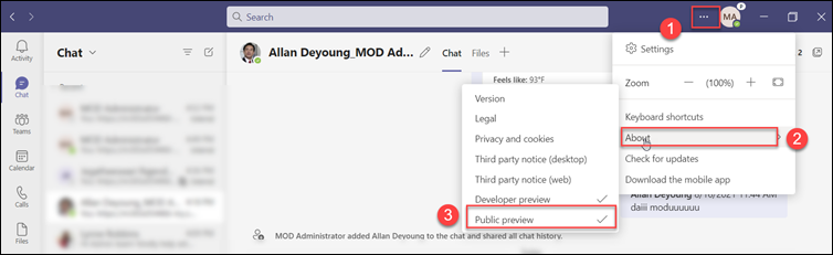 Microsoft released this feature as a Public preview, to make use of this feature you can enable the ‘Public preview’ option in Microsoft teams as shown in below image.