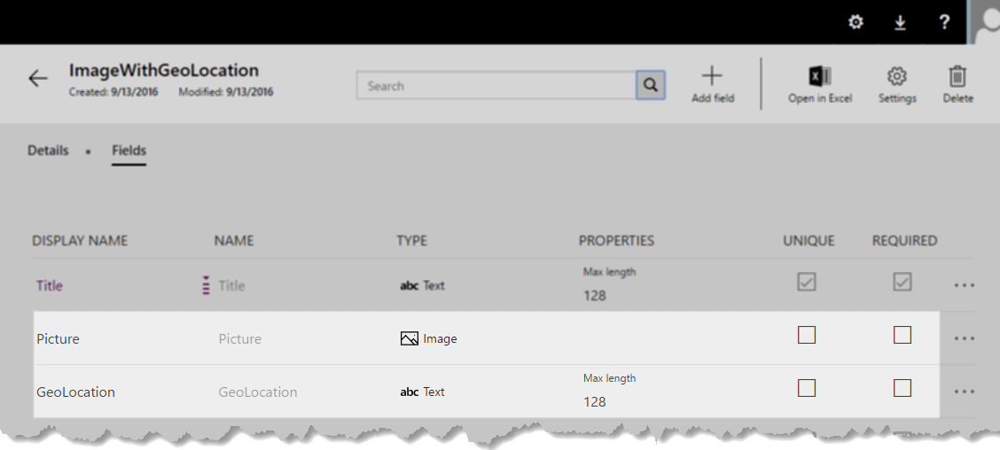 Create a new CDM entity named ‘ImageWithGeoLocation’ and the fields as