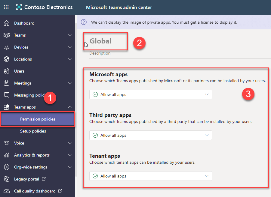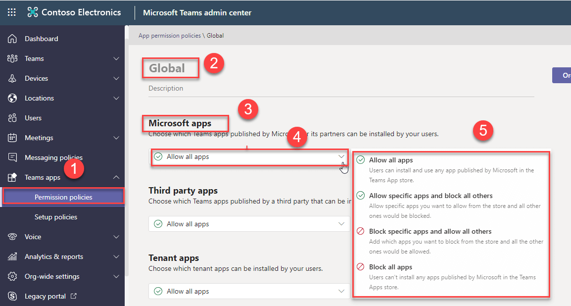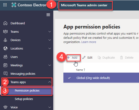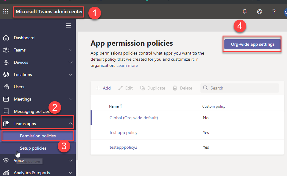 Microsoft Teams admin center Teams Apps Permission Policy Org-wide app