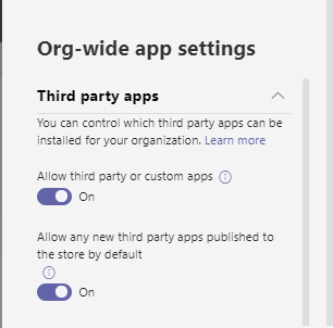 the third-party apps and custom apps in teams.