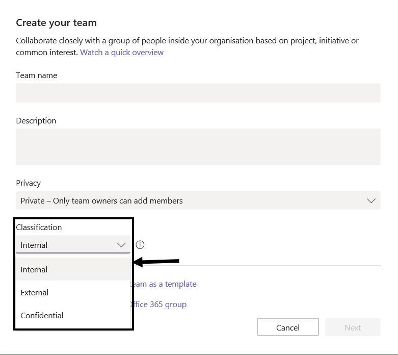 Once you set the classification list, it will be shown during Teams
