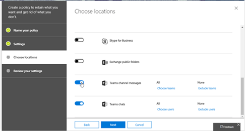 You can set the retention policies for Teams team conversations and chat