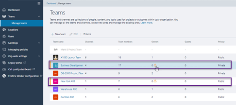 - Check for Teams without Owners