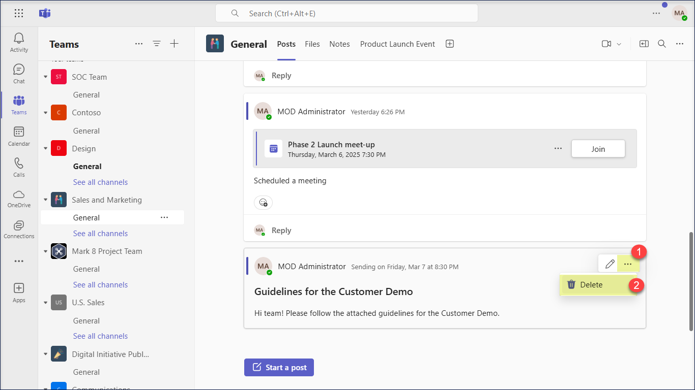 Furthermore, you can perform the below operations on a scheduled Microsoft Teams channel message