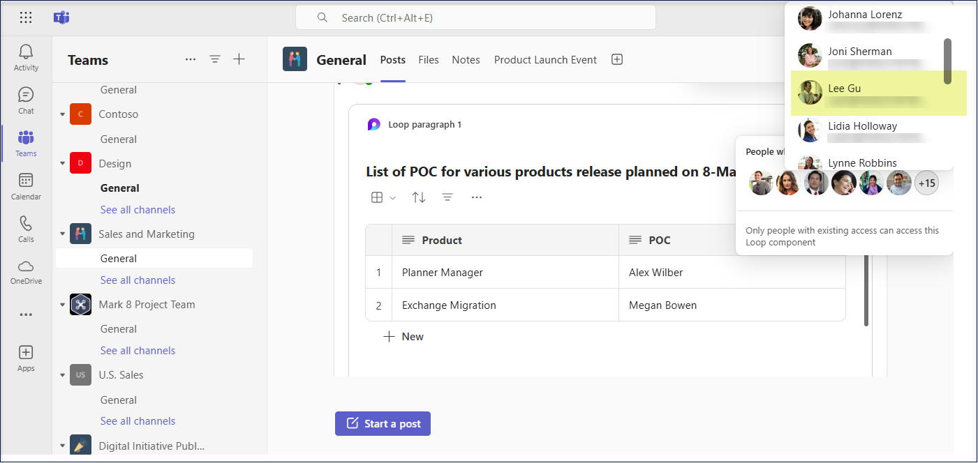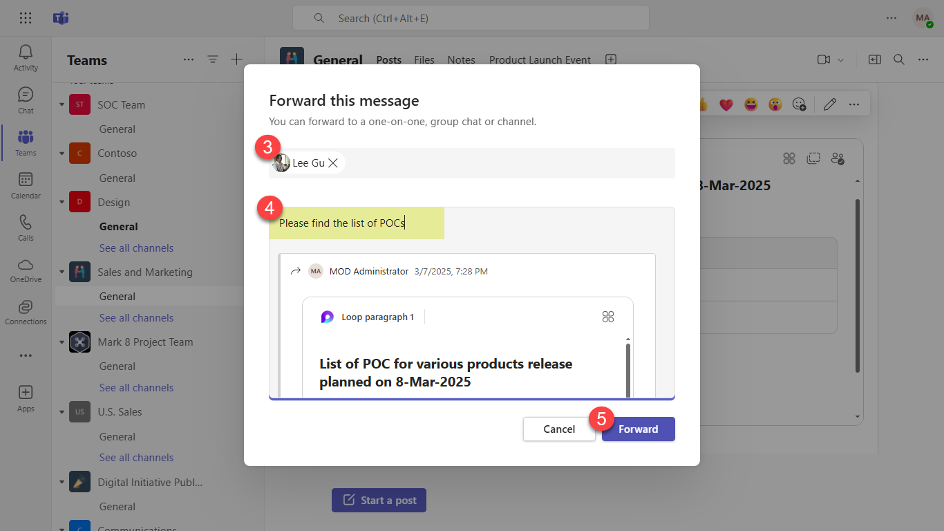 Forward loop components in Microsoft Teams