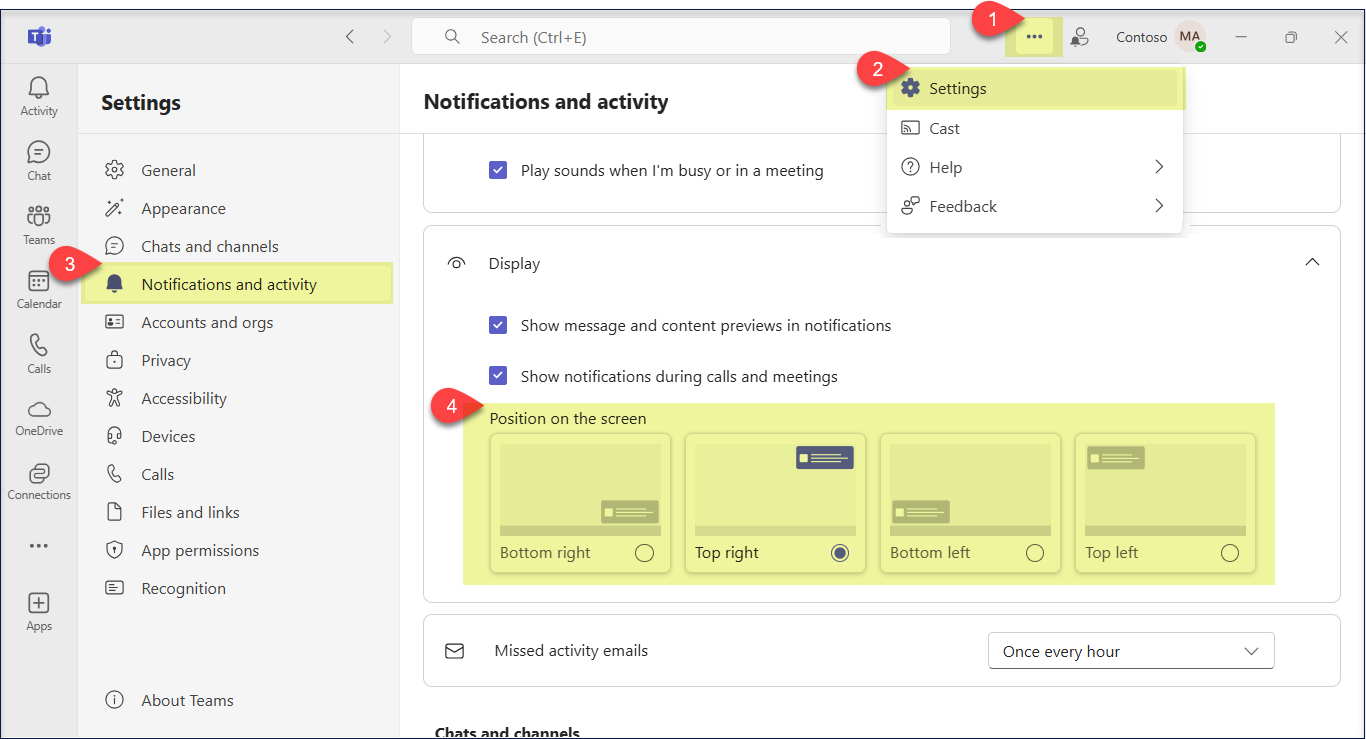 Customize your notification location in Microsoft Teams