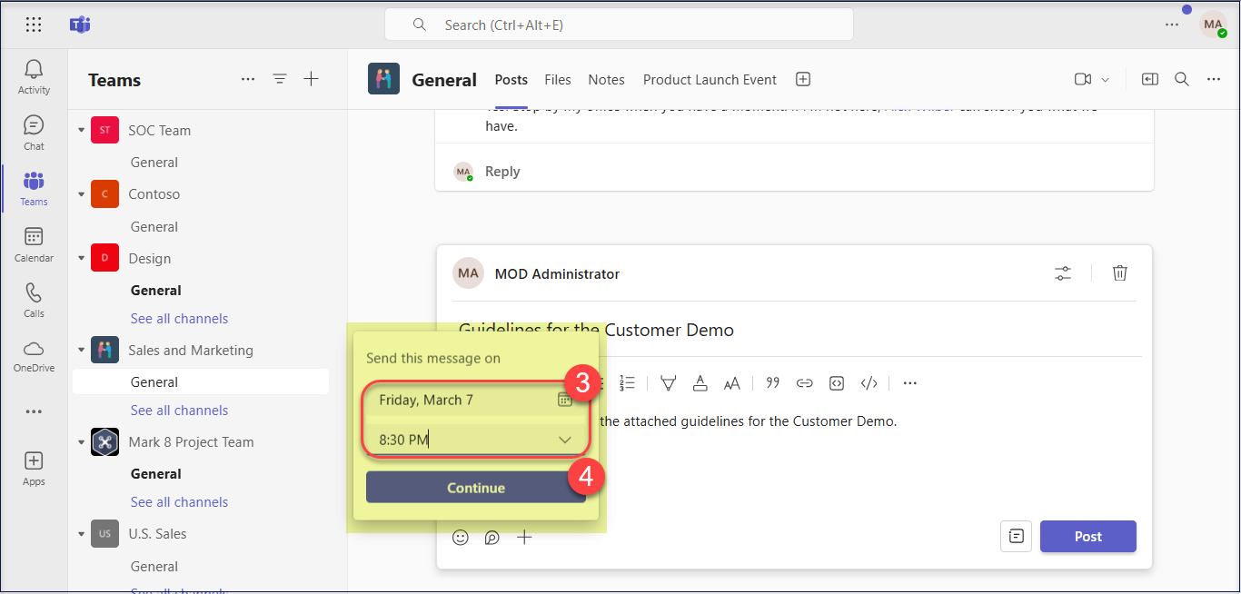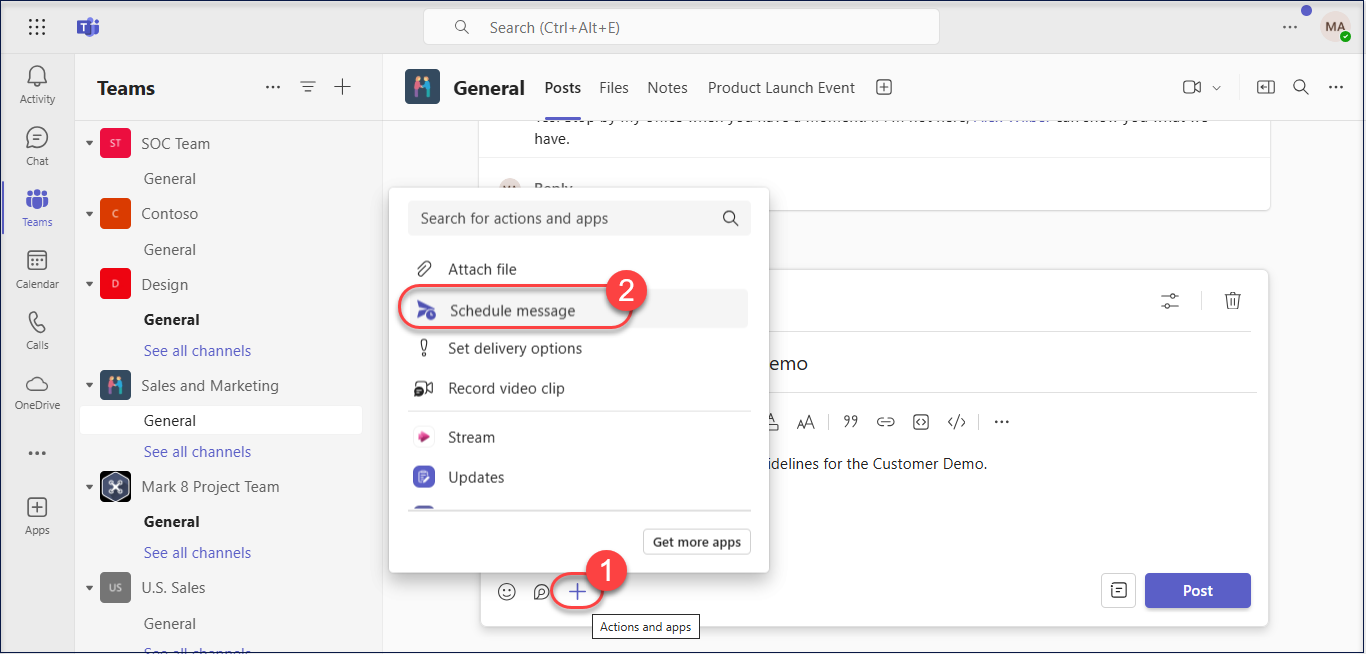 How to schedule a Microsoft Teams channel message?