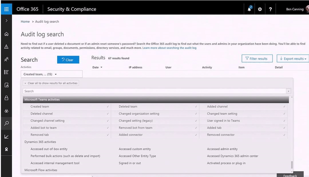- Audit logs are recorded for all Teams activities