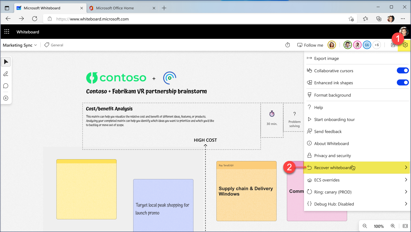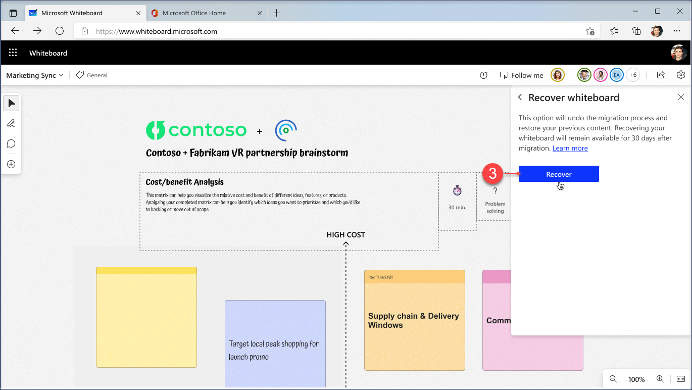 One can initiate the recovery flow by navigating to Settings -> Recover whiteboard