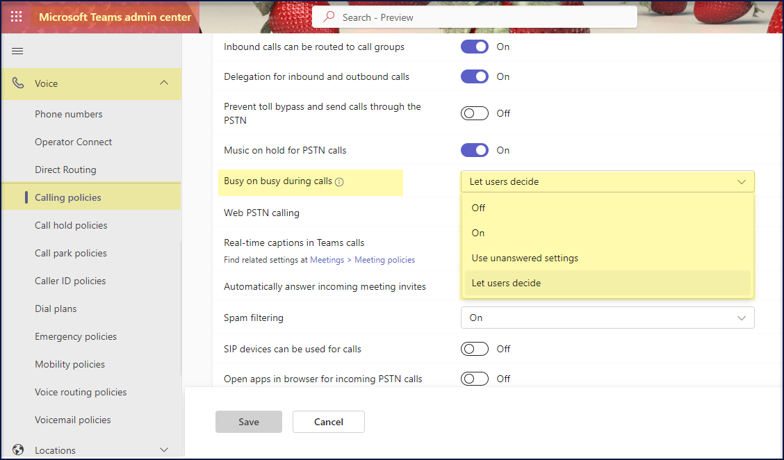 Step 1 : In the Teams admin center, enable the calling policy – “Busy on busy during calls” to be ‘Let users decide’ to use this feature.