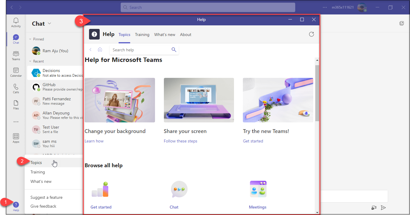 Previously, the Help app opened within the same Teams window . With a recent update, the Help app will now open as a pop-out as a separate window. This change will allow users to view Help app content separately along with their current Teams content.