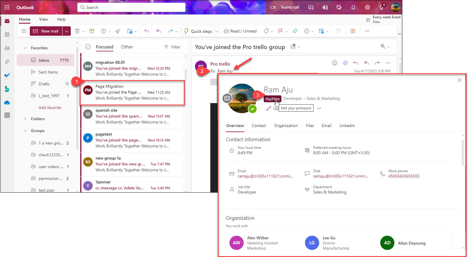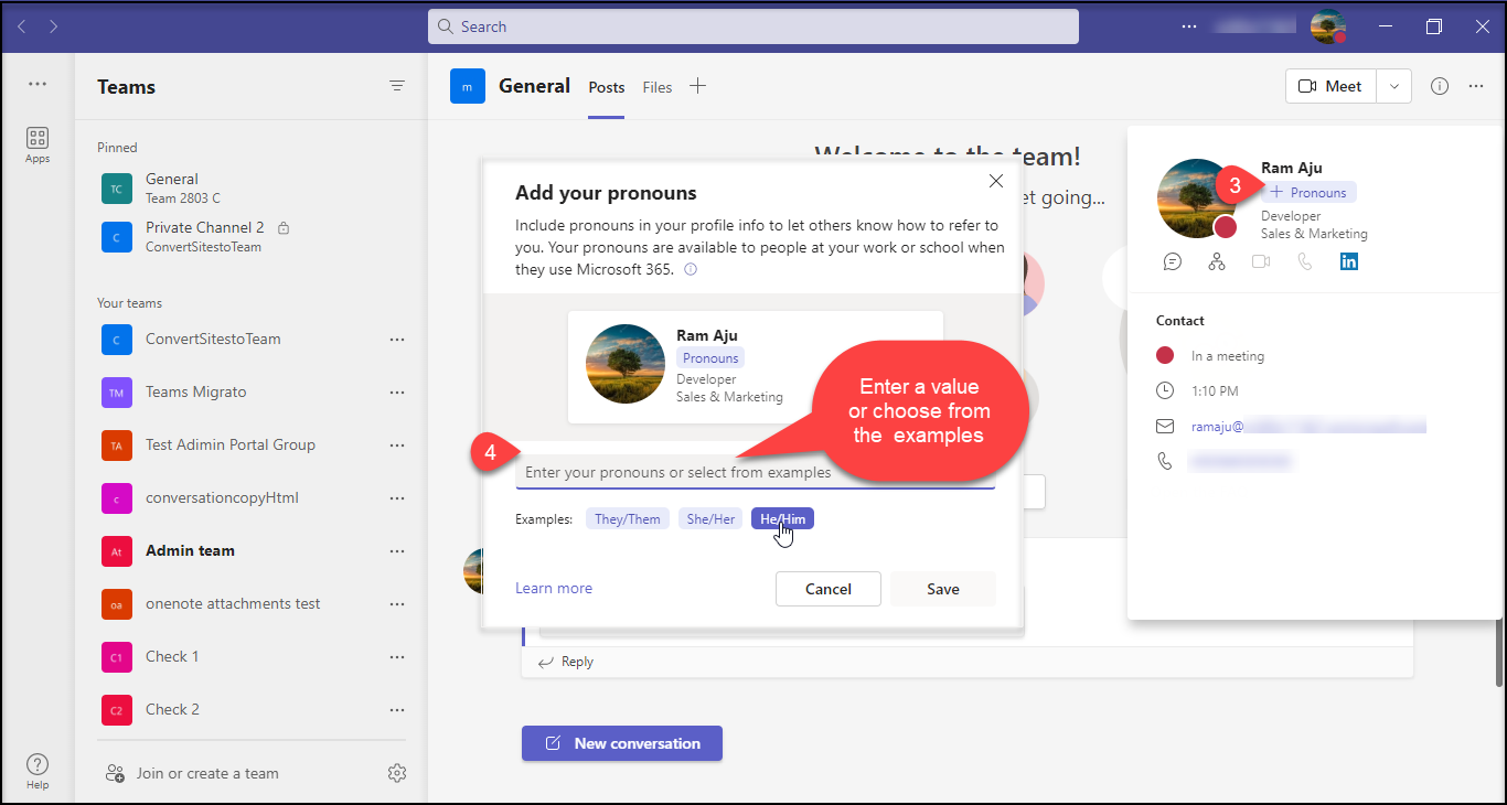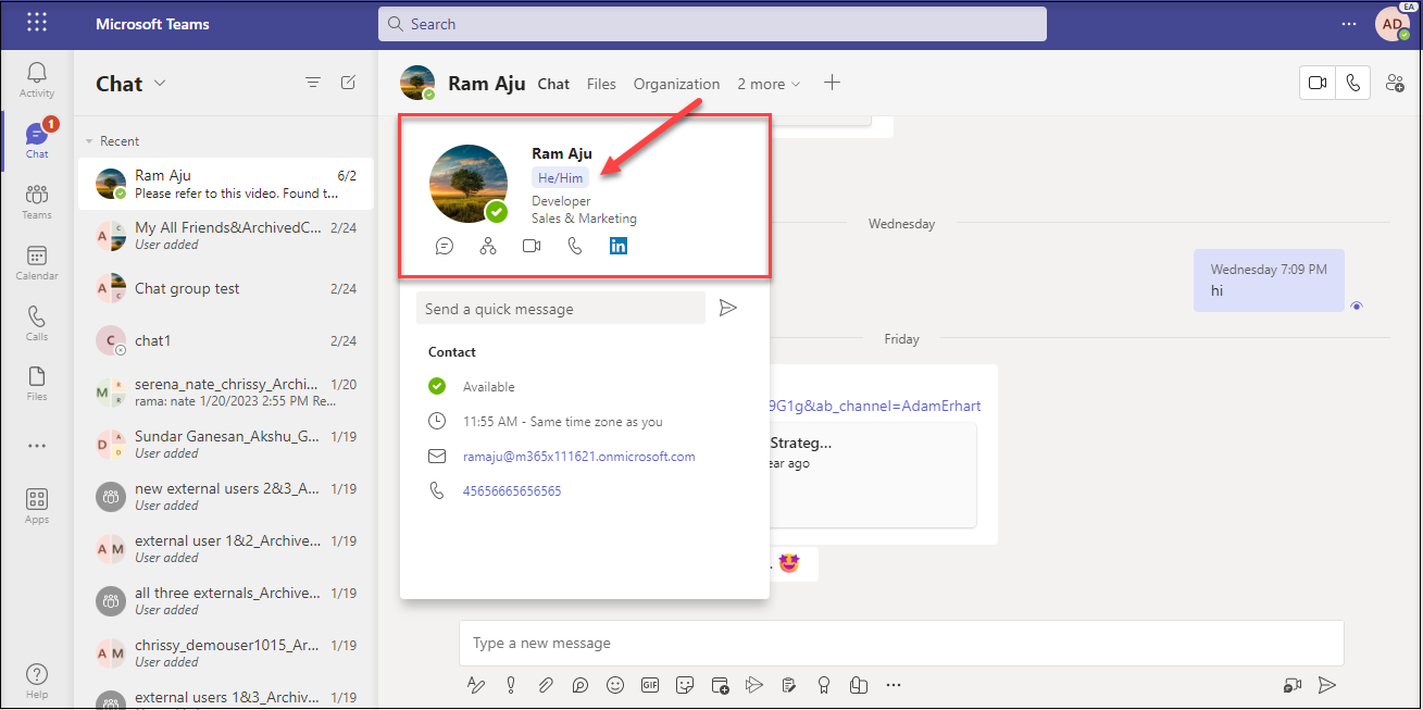 1. Pronouns on Profile Cards in Microsoft Teams and Outlook Web