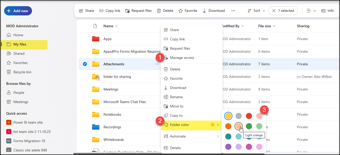 For now in the People View, for the folders that are shared, we get an additional option to add them as shortcut in MyFiles as indicated below.