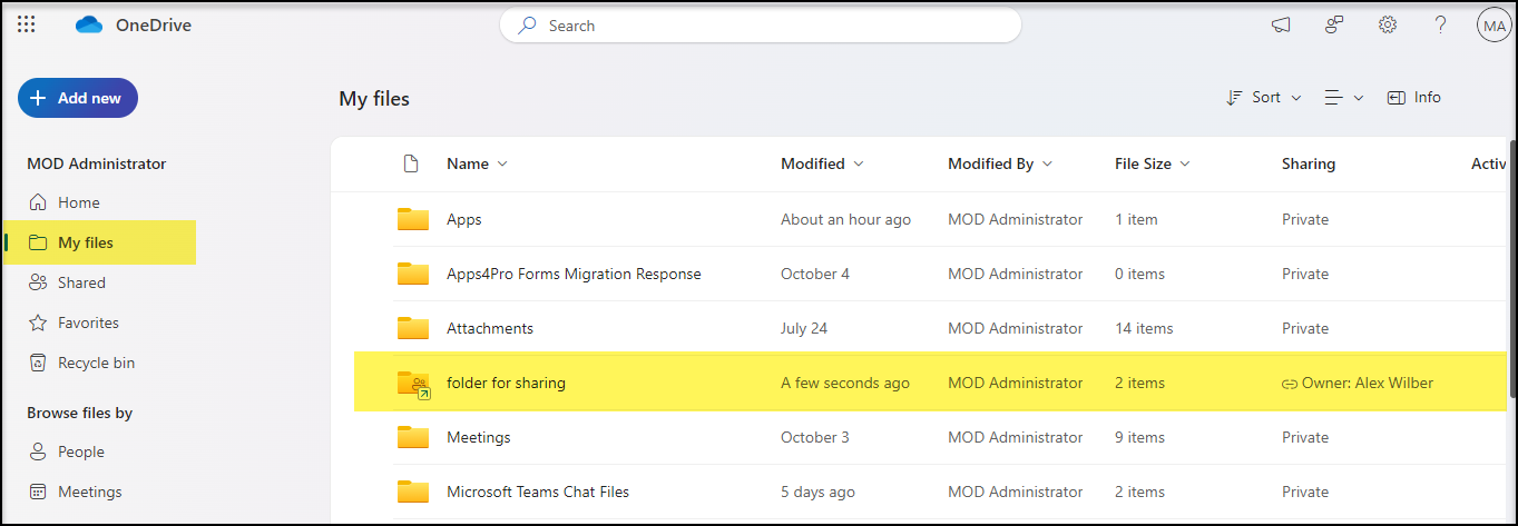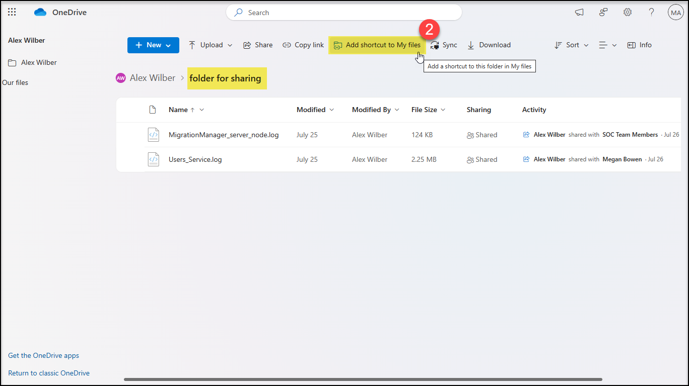 Shortcut added to My files