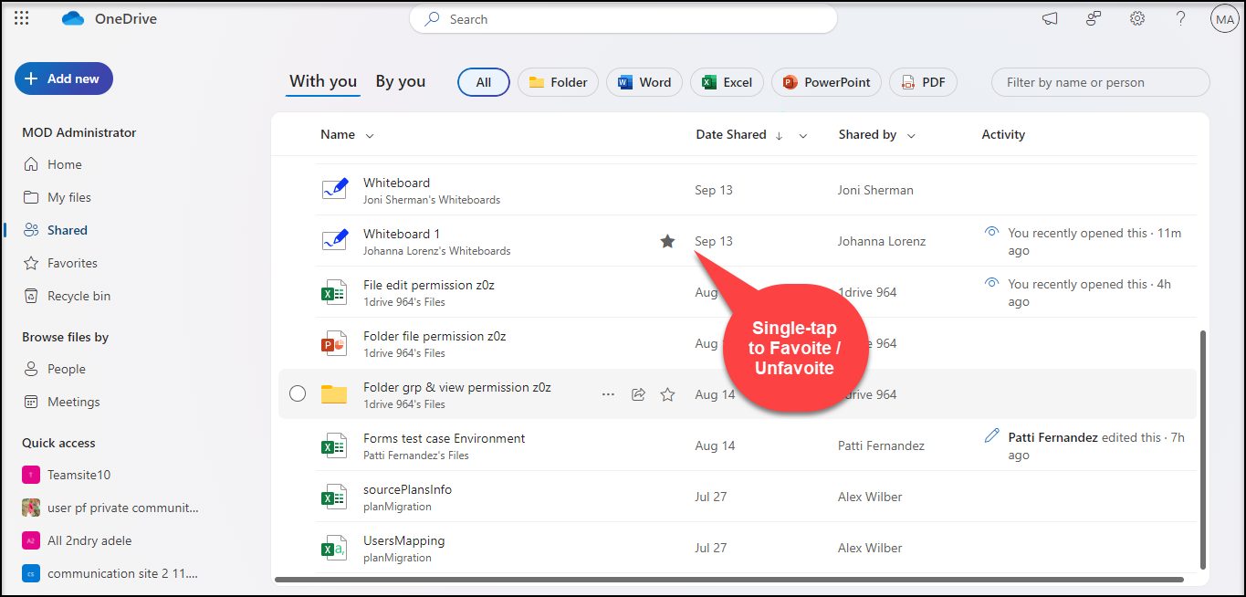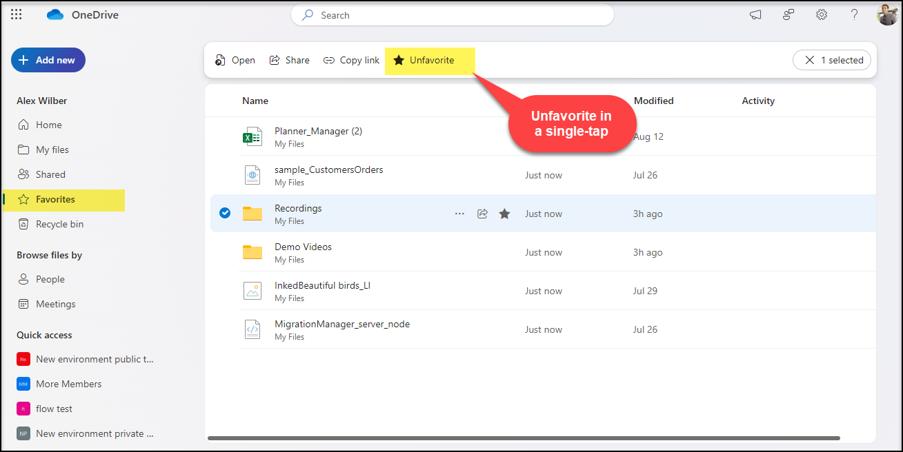 You can easily favorite files in OneDrive using the familiar ‘star-tap’ experience found in Microsoft 365 apps. All your favorites will appear in one organized view, no matter which app you used to favorite them. We can witness the favoriting experience across OneDrive in Home, My Files, Shared, File View of People & Meetings.
