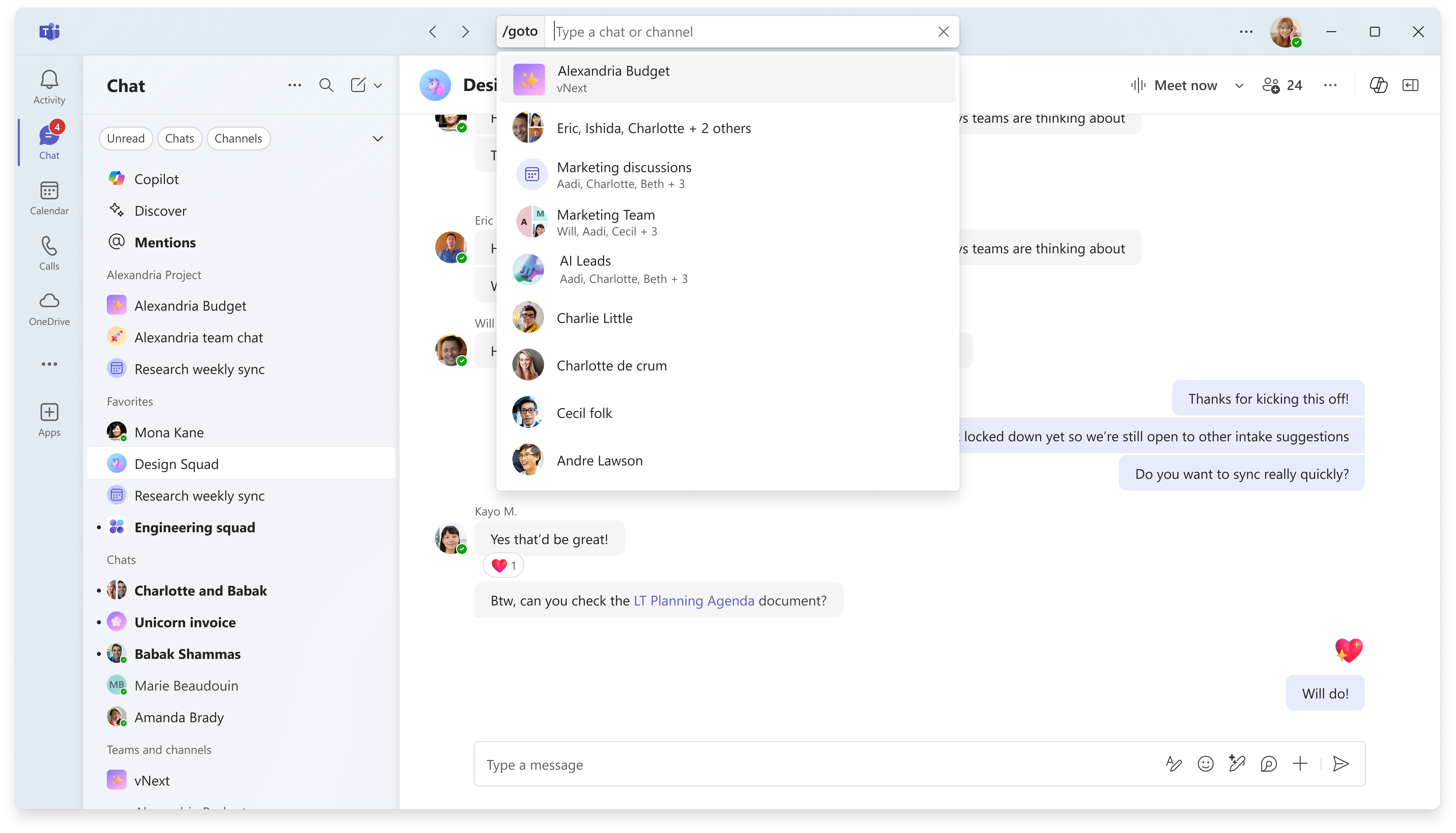 Go to helps you navigate Teams effectively without context switching. Quickly navigate to your frequently used conversation across your chat and channels with a new keyboard shortcut Ctrl+G (Cmd+G on Mac).