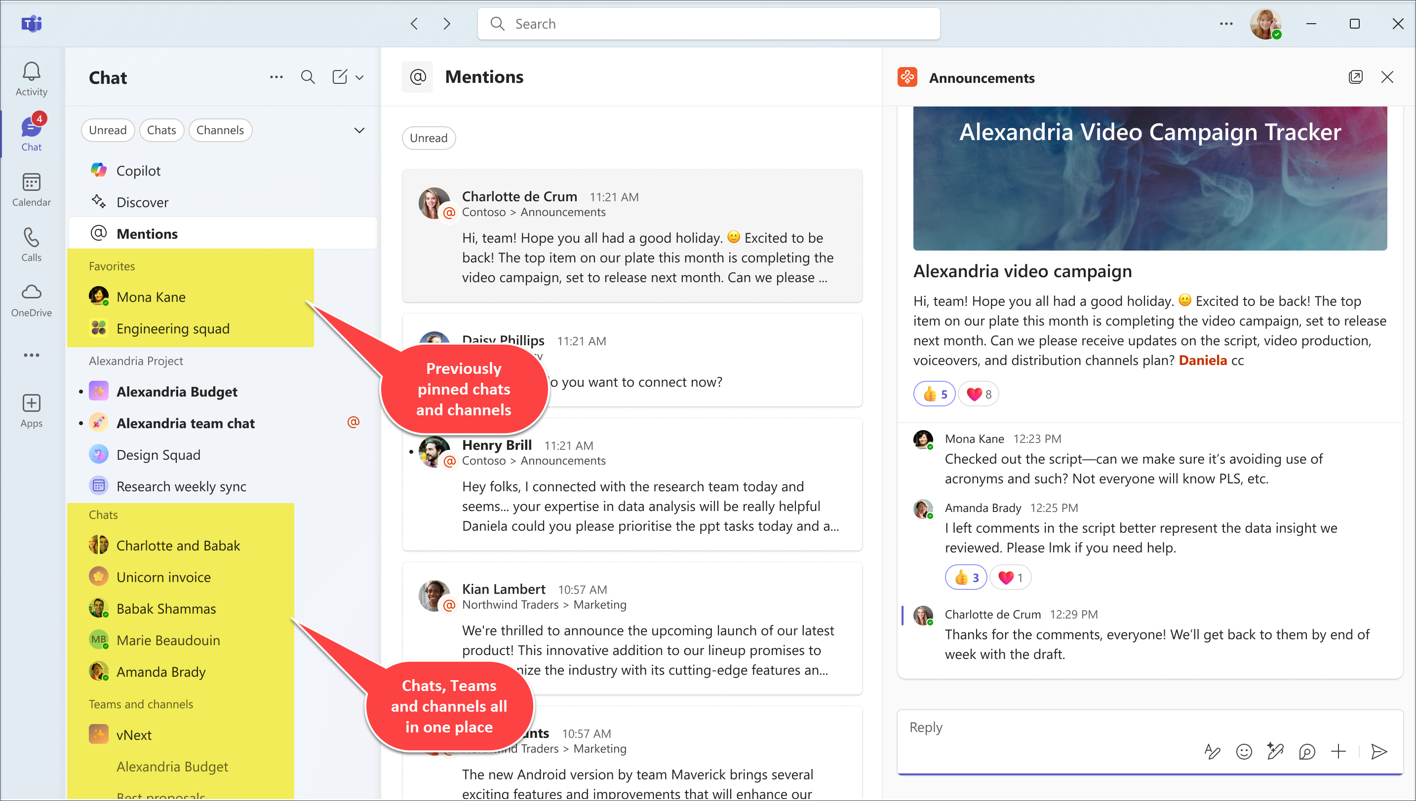 Bring your chat, teams, and channels all into a single place. This will help catch up with the updates without having to switch contexts, integrating both chat and channels into your critical workflows.