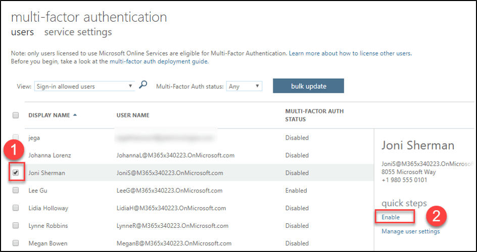 Now select a user and Enable MFA