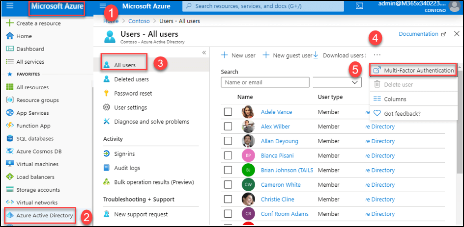 Microsoft Azure portal → Azure Active Directory → Users → Multi-factor
