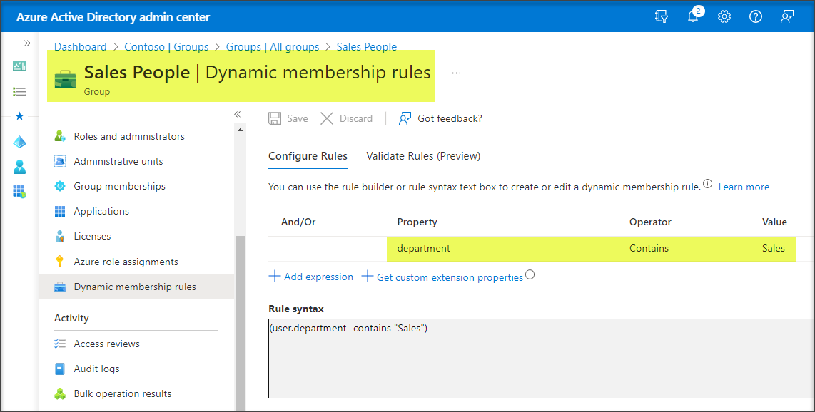 A glimpse on the dynamic membership rules of the group ‘Sales People’ :