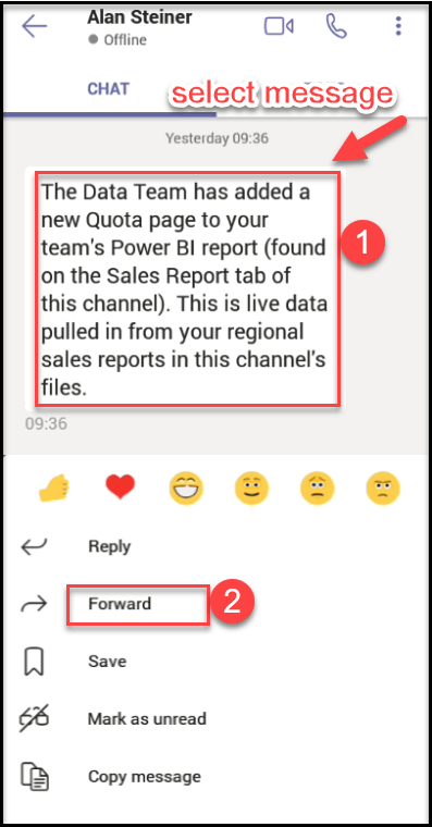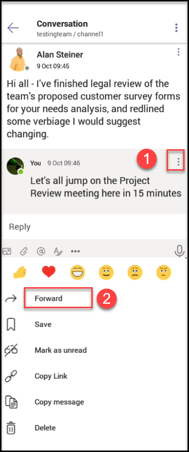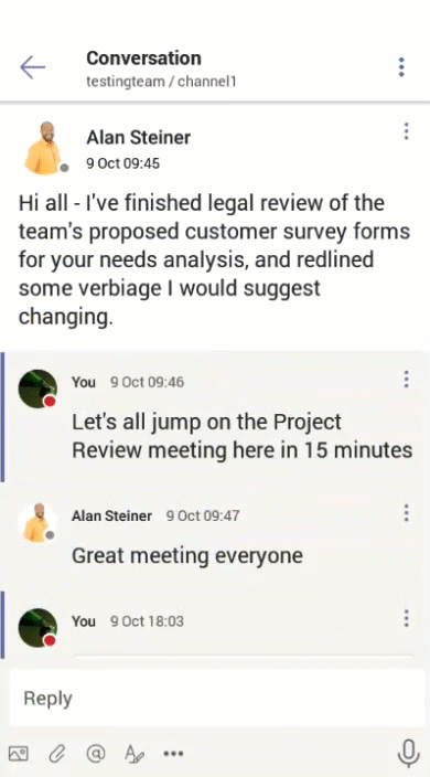 Teams Mobile App. Using this feature, we can reply with the original