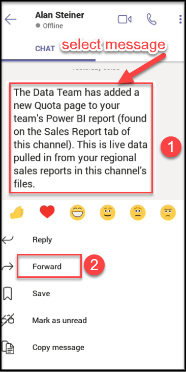 In this scenario, we can forward the message from personal chat to