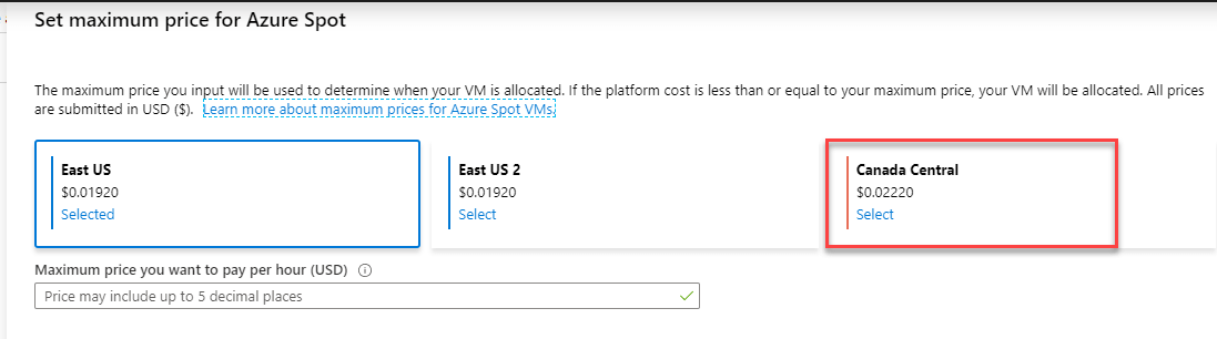 max price which is Canada central ($0.02220), but currently, the price