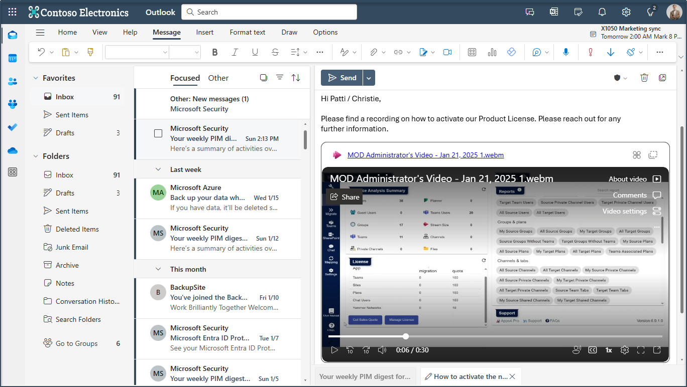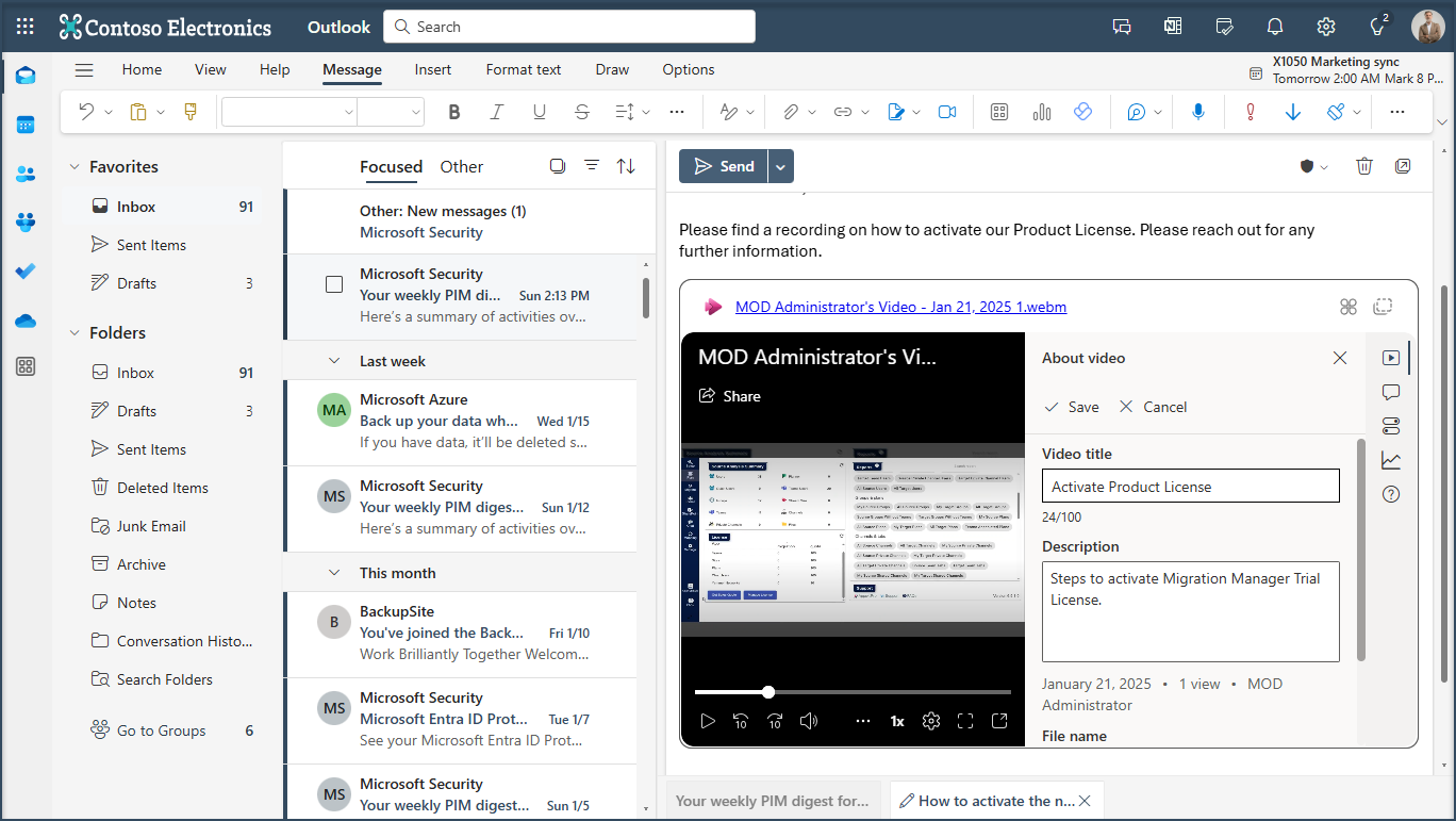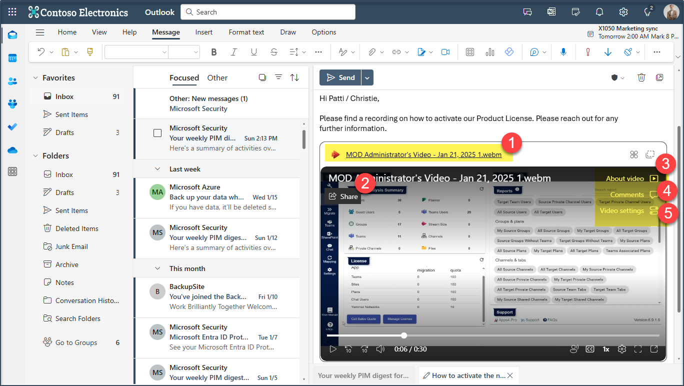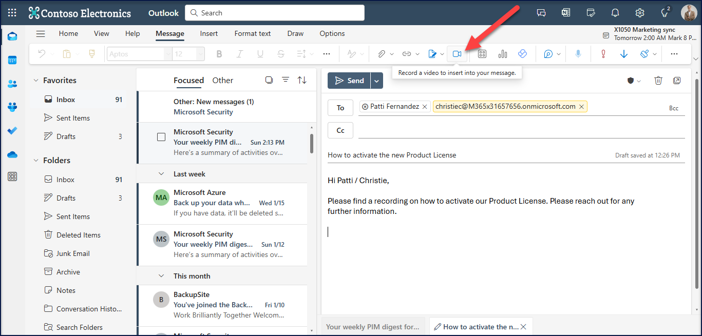 The recorded video gets added to the composing email in Microsoft Outlook.