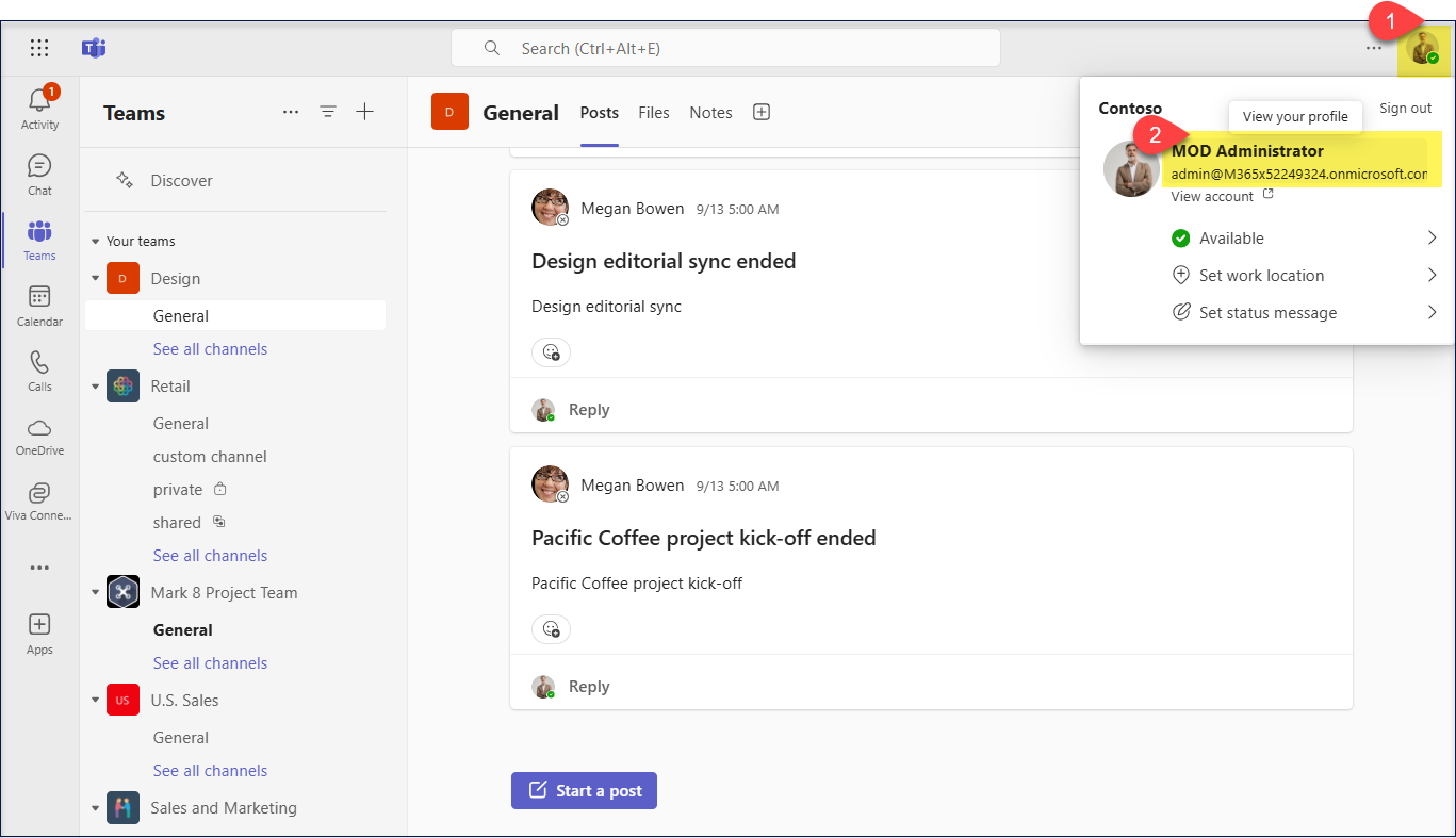 Select your profile photo in the upper right corner of the screen, and then select your name.