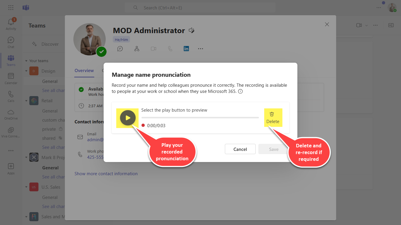 4 min readAdd a name pronunciation to your profile card in Teams and Outlook