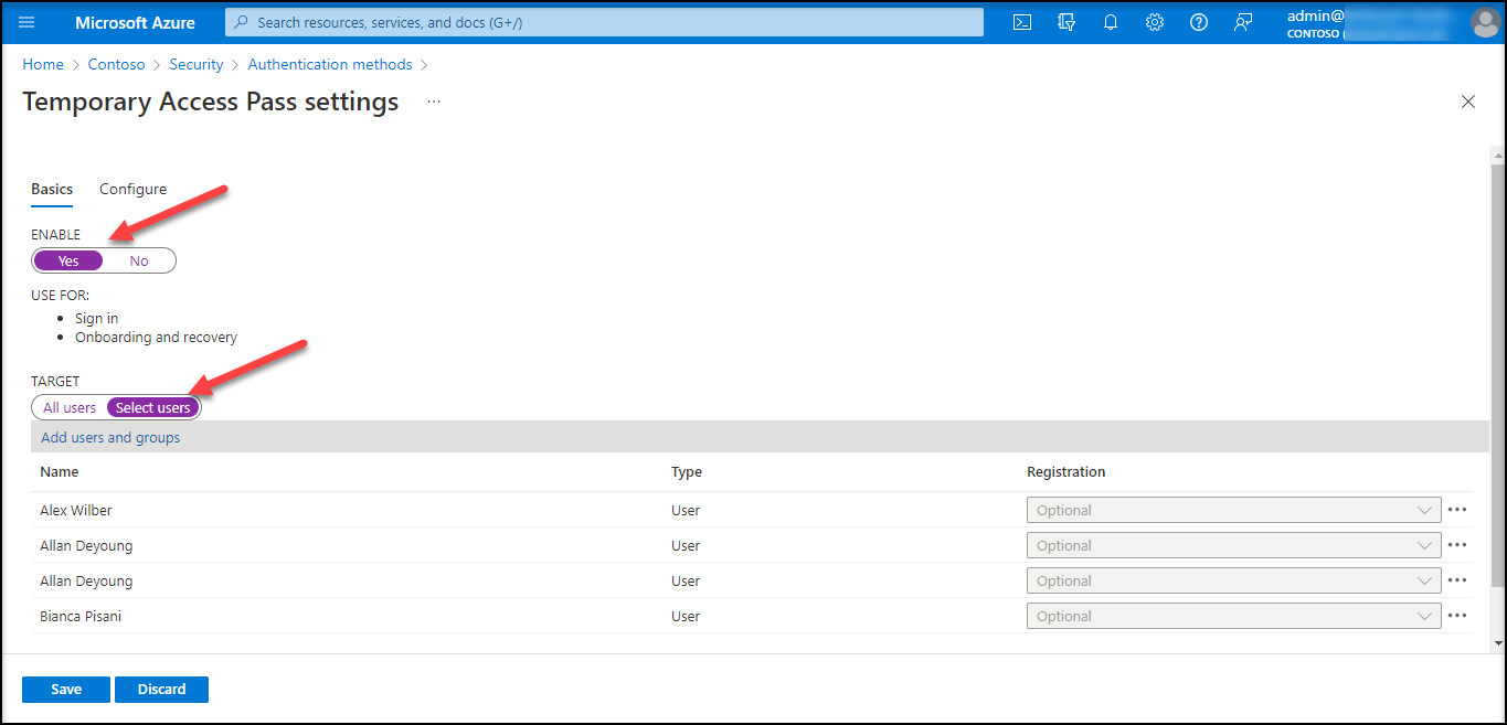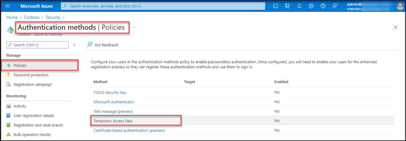 - Enabling the Temporary Access Pass policy