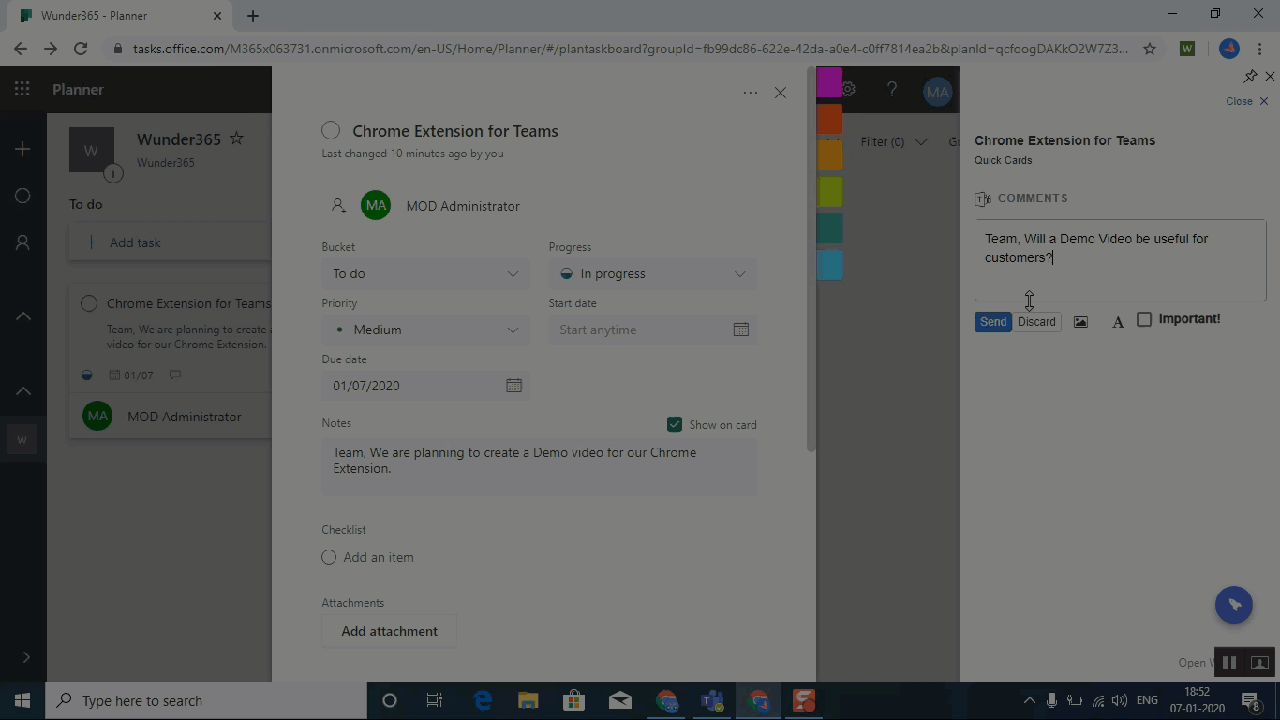 - Open a Planner task and click on the Wunder365 Chrome extension